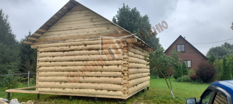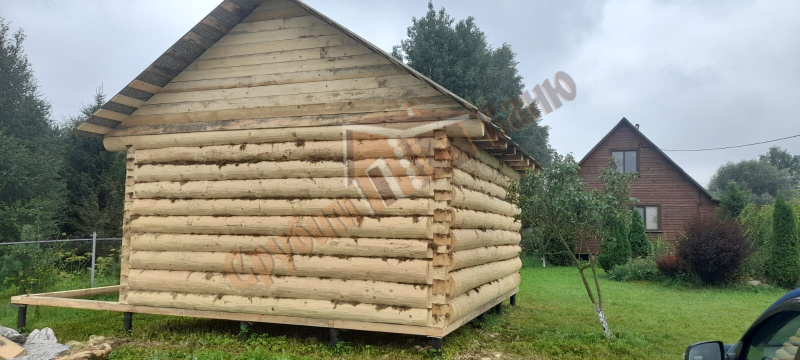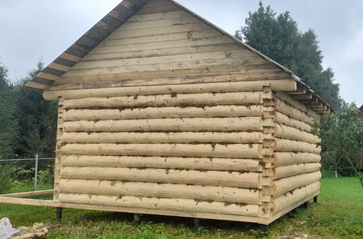 Информация по проекту: сруб 4,9 *5,7 по внешним углам, установлен на свайное поле Заказчика, поэтому и размер немного нестандартный. Была сделана обвязка из бруса 6 шт.