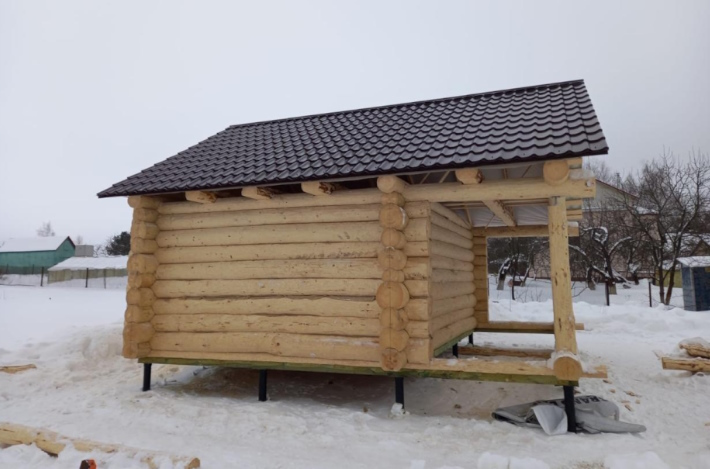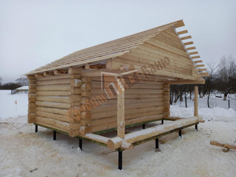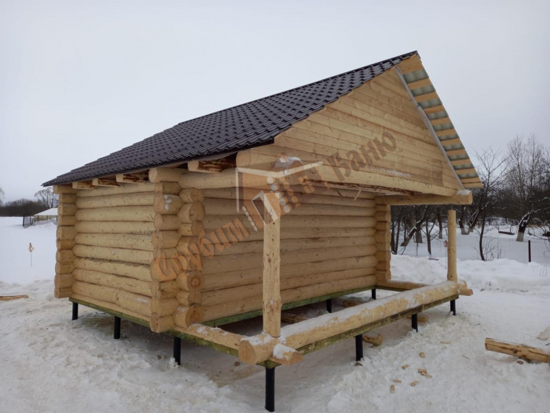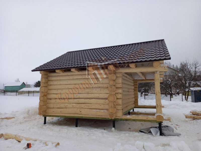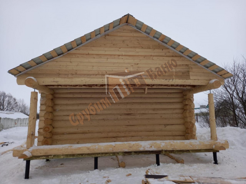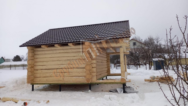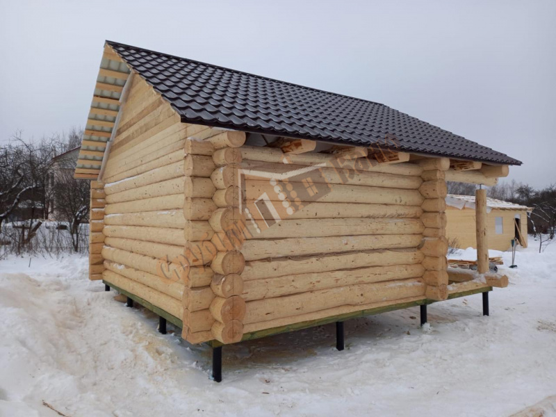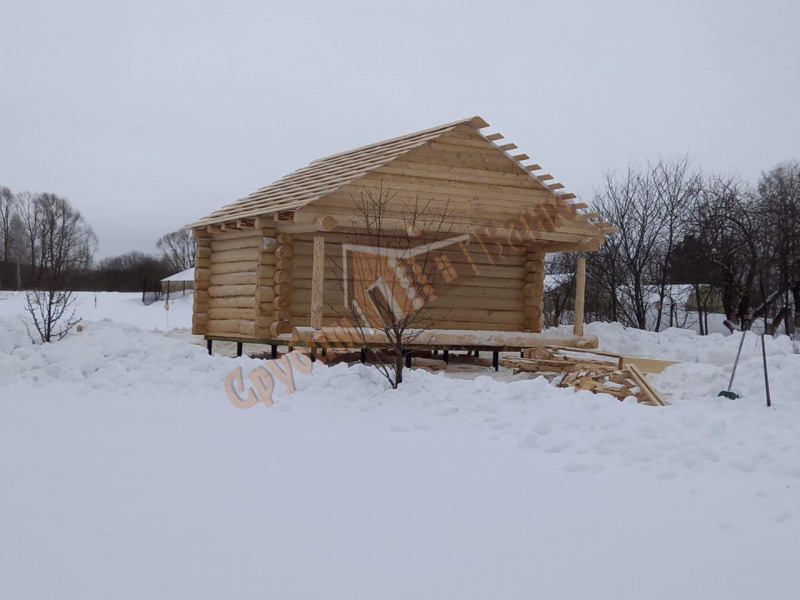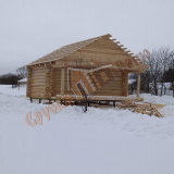 Информация по проекту: сруб 4х6 + 2 чашка, стандарт - обвязка из бруса, фронтоны вагонка, обрешетка и рубероид, установлен Тульская область, Алексинский район, с. Фомищево, д 35 - договор №08-10-С на сруб из зимнего леса. Дополнительно была выполнена укладка металлочерепицы. Так как диаметр бревен получился довольно большим, кран для сборки сруба был оплачен с Заказчиком пополам.