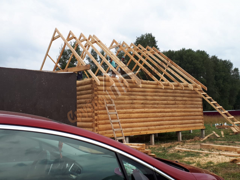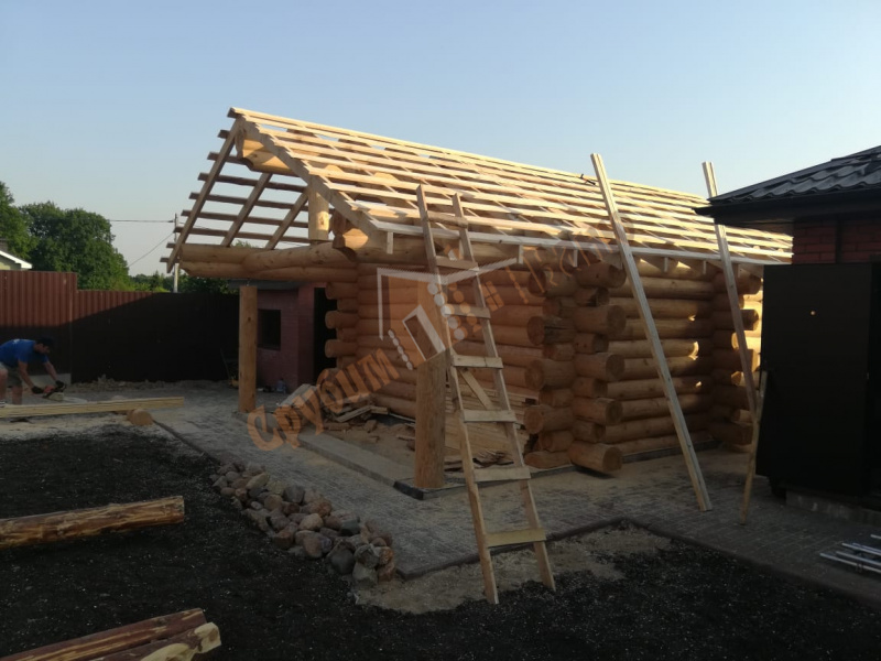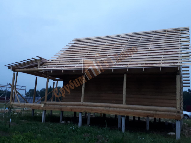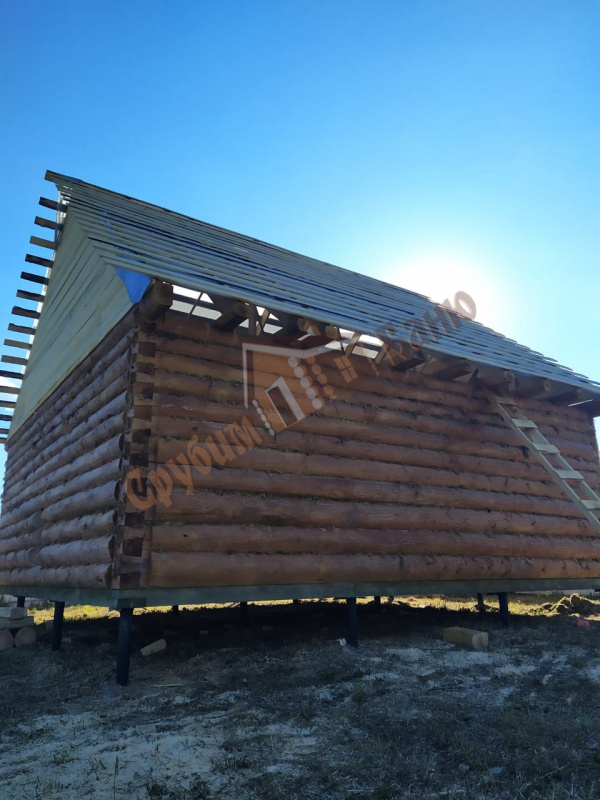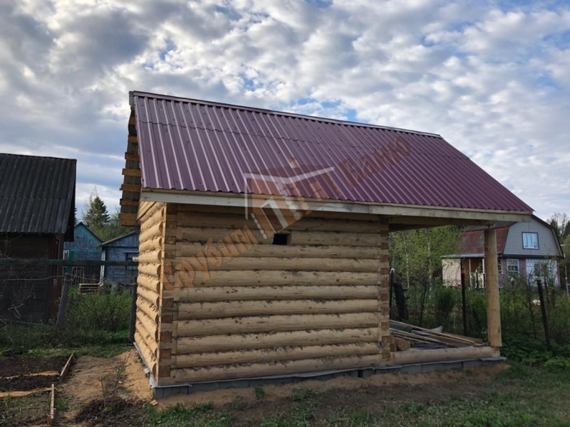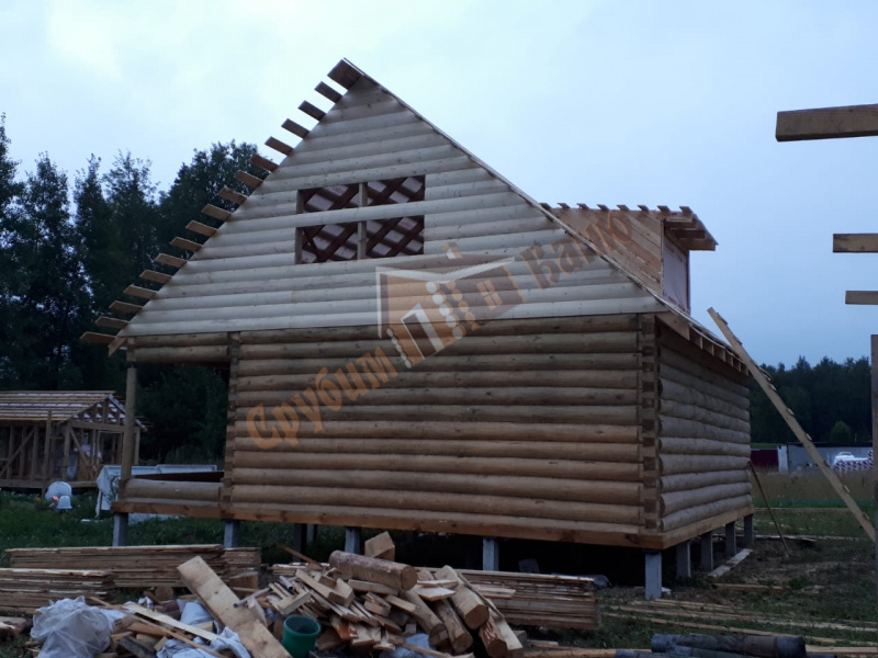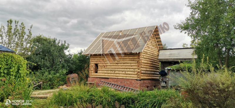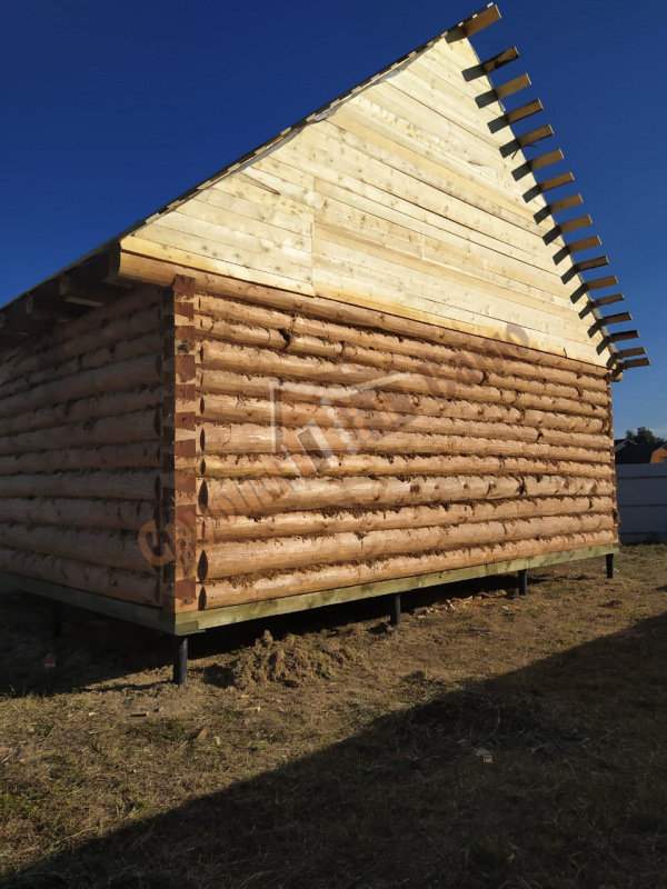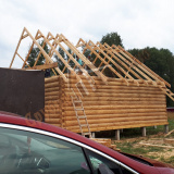 | Ленинградская область, Сосновское СП, СНТ «Севкабель» – 286 | 4х5 чашка, фронтоны бревно 1,2 метра, коньковое бревно. Стропила 50х150, обрешетка и рубероид. |