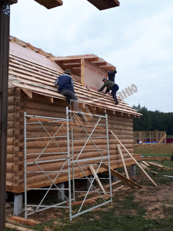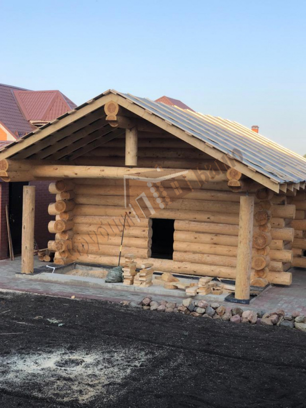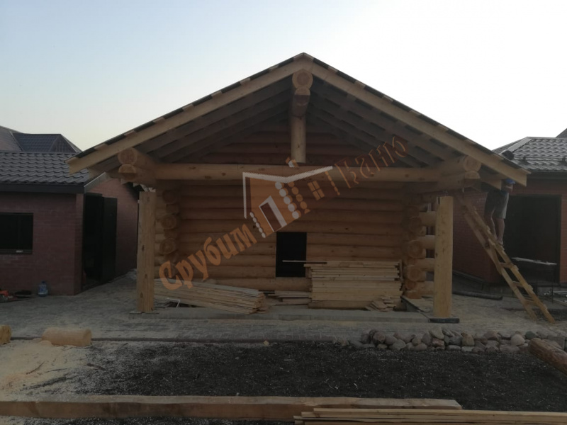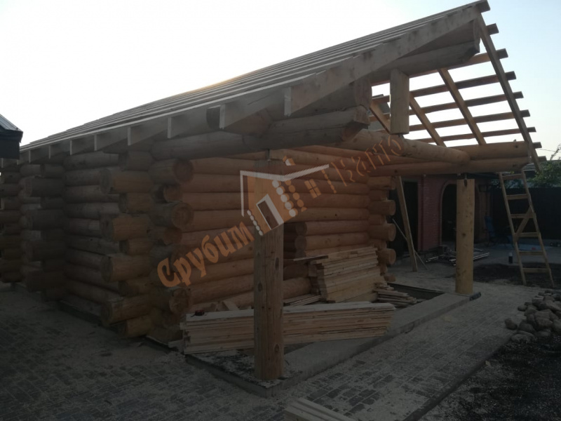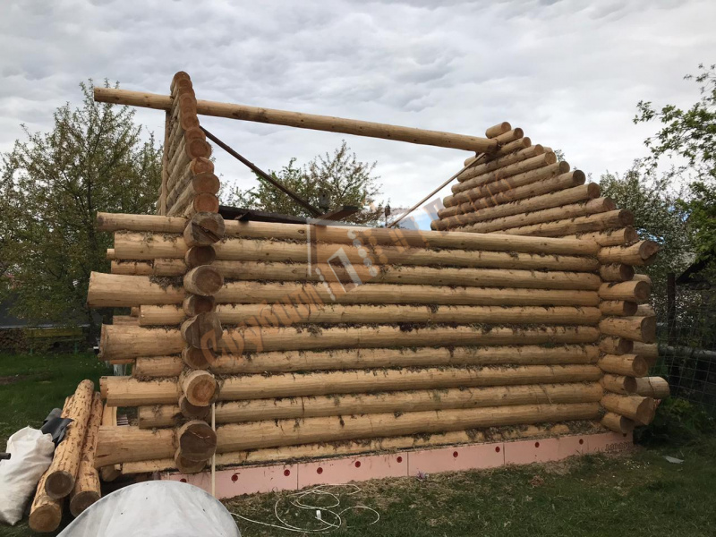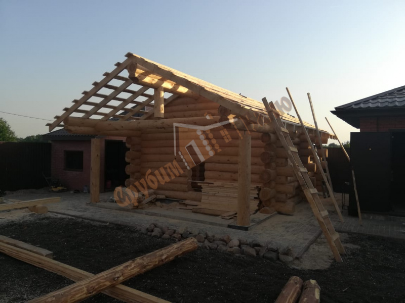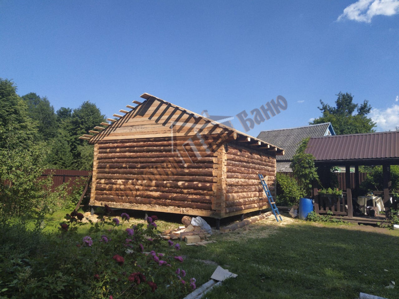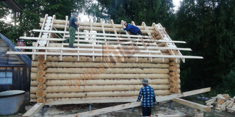 | Ленинградская область, Сосновское СП, СНТ «Севкабель» – 286 | 4х5 чашка, фронтоны бревно 1,2 метра, коньковое бревно. Стропила 50х150, обрешетка и рубероид. |