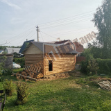 | Московская область, Чеховский район, село Мелехово, д. 31 | 4х4+2 стандарт, лапа/тес. Двухскатная мансардная крыша, фронтоны вагонка, обрешетка и рубероид. Обвязка из бруса. |