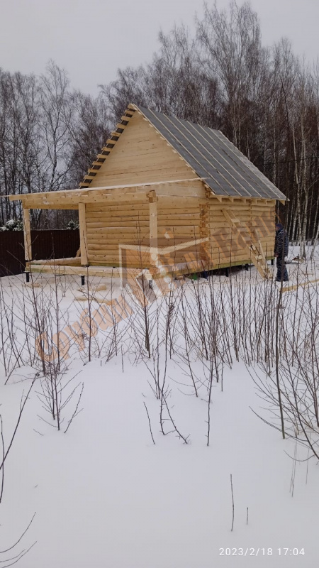 | Калужская обл., Малоярославецкий район, село Ильинское, ул. Речная, д. 32а | 3х5 стандарт лапа на фундамент Заказчика – фронтоны вагонка, обрешетка и вместо рубероида контррейка. |