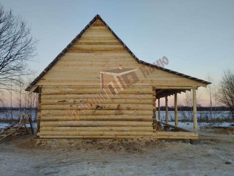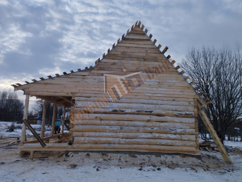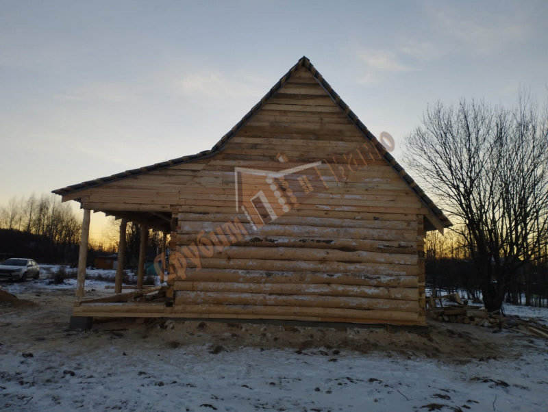 | Калужская обл., дер. Морозовы дворы | 4х6 стандарт с доп. венцом и обвязкой. Фронтоны вагонка, обрешетка и рубероид. |